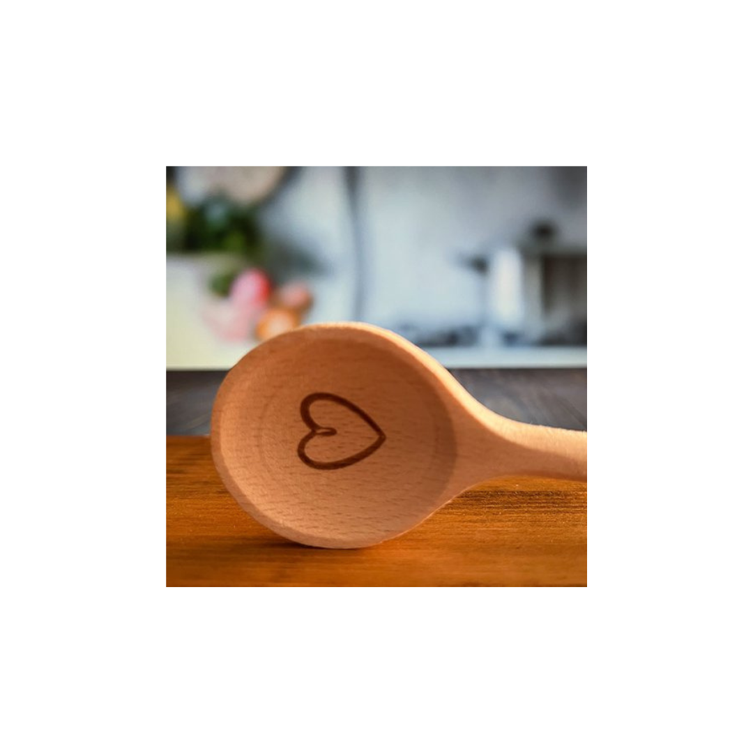 Kooklepel met hart voor kleine keukenhulpjes en poppenkoks. Gemaakt van natuurlijk hout.