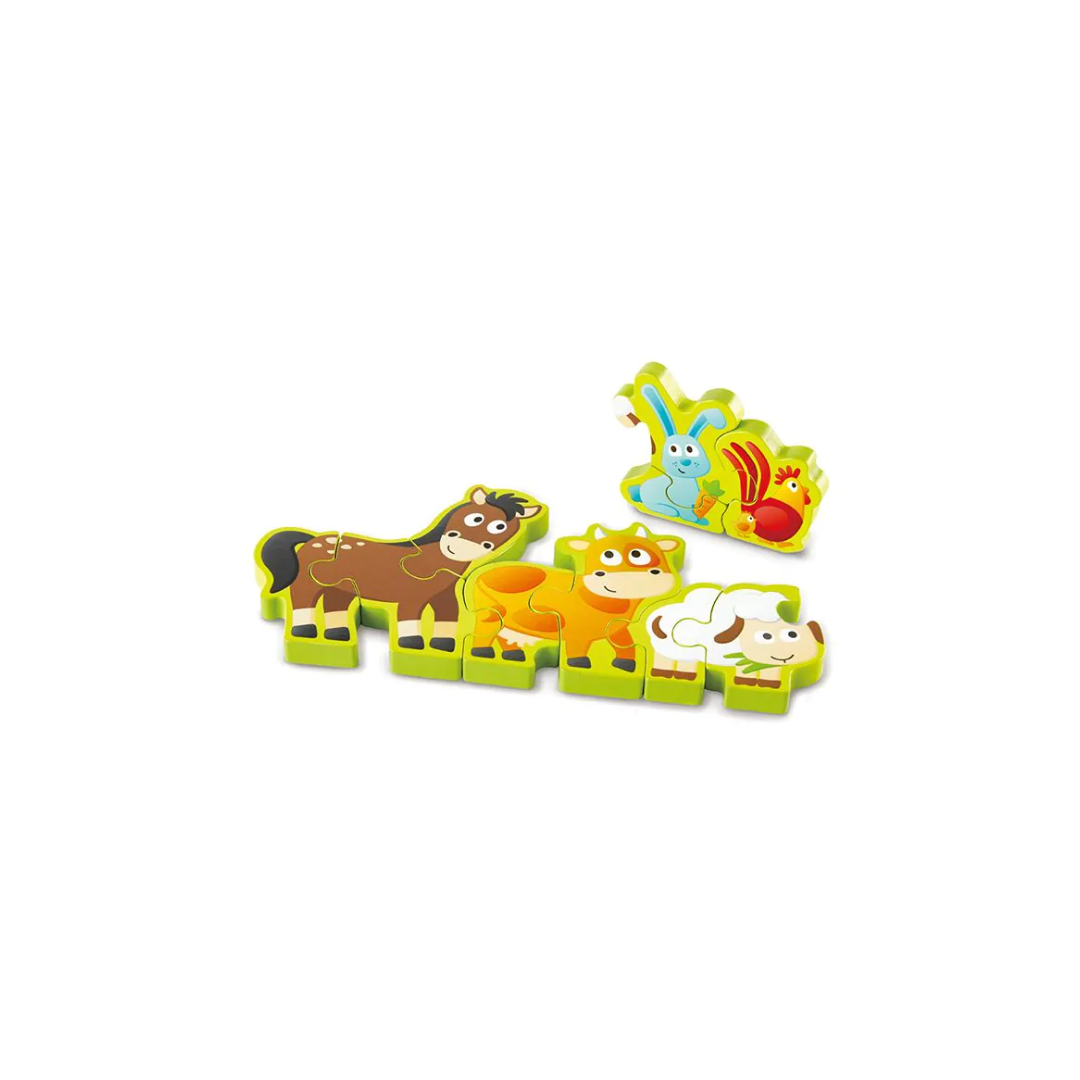 De puzzel bestaat uit 10 stevige stukken met aan de ene kant vrolijke boerderijdieren en aan de andere kant de cijfers van 1 tot 10. Kinderen kunnen de puzzel maken en vervolgens omdraaien om te controleren of de cijfers in de juiste volgorde liggen. Zo worden tellen, herkennen en logisch denken gestimuleerd.