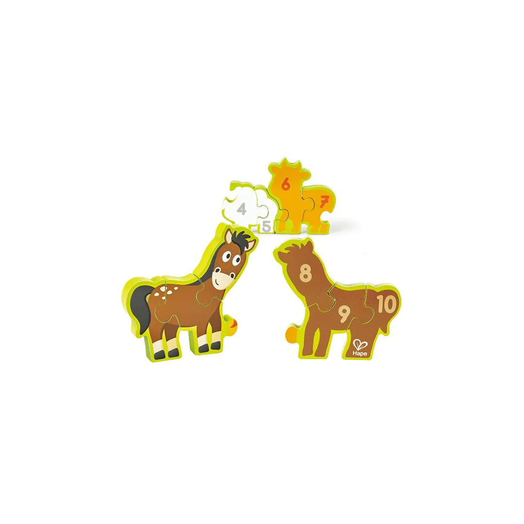 Spelenderwijs leren tellen en dieren herkennen wordt extra leuk met de Hape Numbers & Farm Animals! Deze kleurrijke houten puzzel combineert educatie met plezier en helpt kinderen op een speelse manier kennismaken met cijfers en boerderijdieren.
