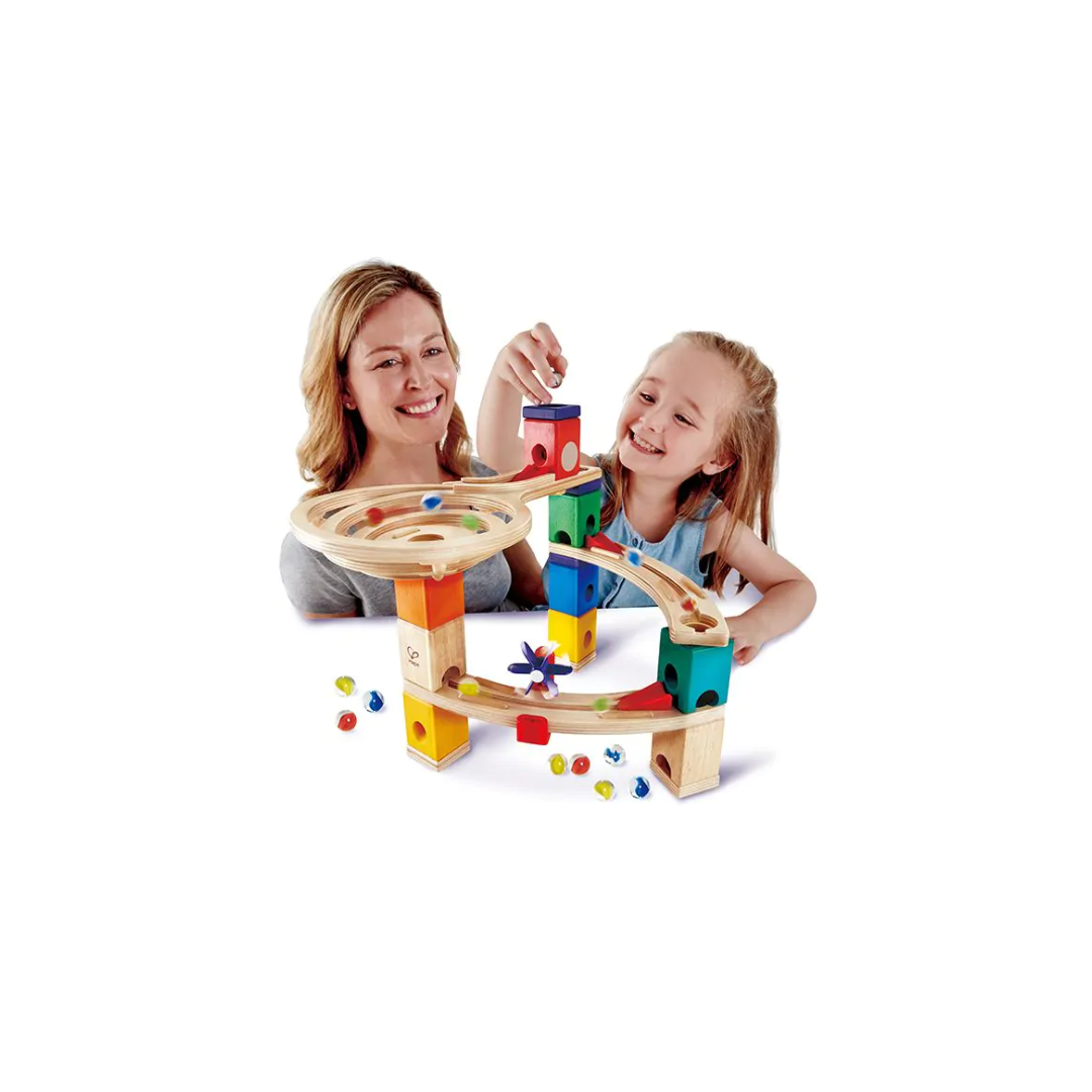 • Knikkerbaan bouwspeelgoed gemaakt van duurzaam hout en niet giftige verf op water basis