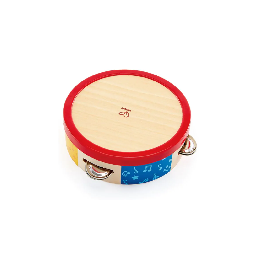 •Houten tamboerijn met gekleurde metalen delen