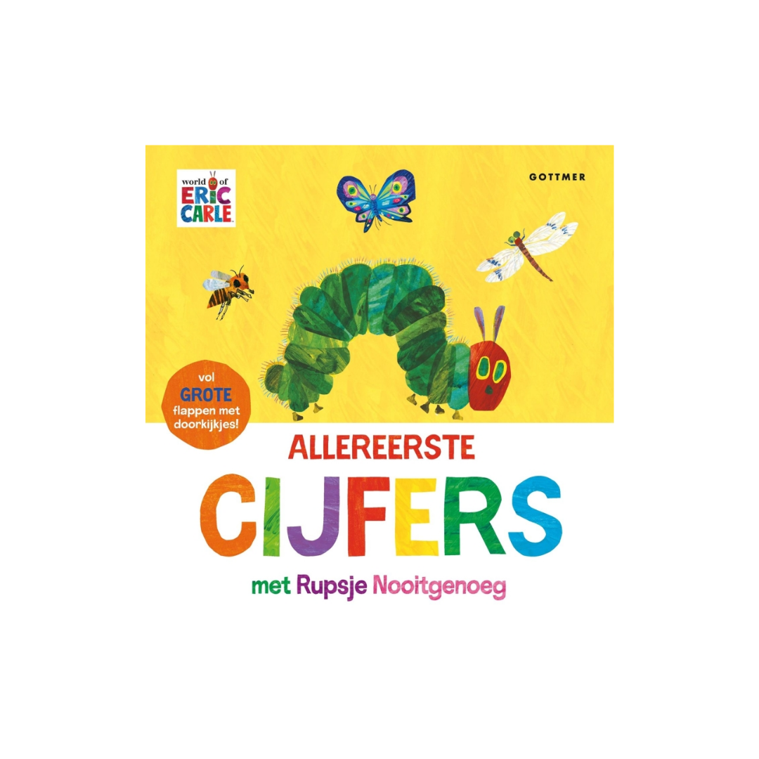 Het kartonboekje ‘Allereerste cijfers met Rupsje Nooitgenoeg’ is de perfecte eerste kennismaking met cijfers en tellen voor kinderen vanaf 2 jaar. Iedere pagina bevat een grote, stevige flap van karton met daarin een doorkijkje om alvast te spieken wat erachter verstopt zit. Kinderen kunnen meetellen met één Rupsje Nooitgenoeg, twee springende kikkers, drie zwemmende vissen, vier zoemende bijen en vijf fladderende vlinders.