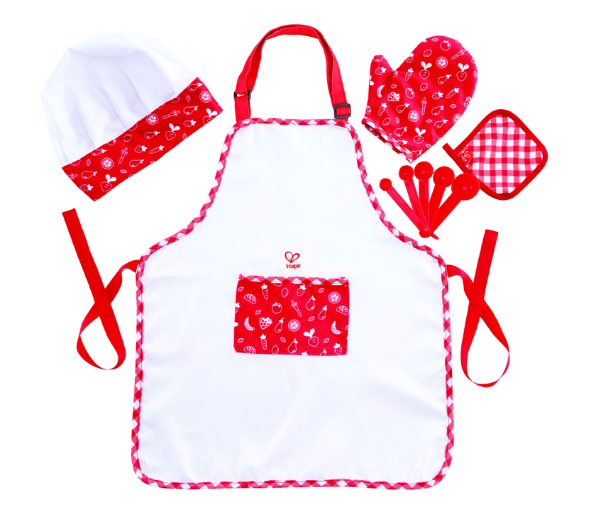 •Bestaat uit een koksmuts, schort, ovenwant en maatschepjes