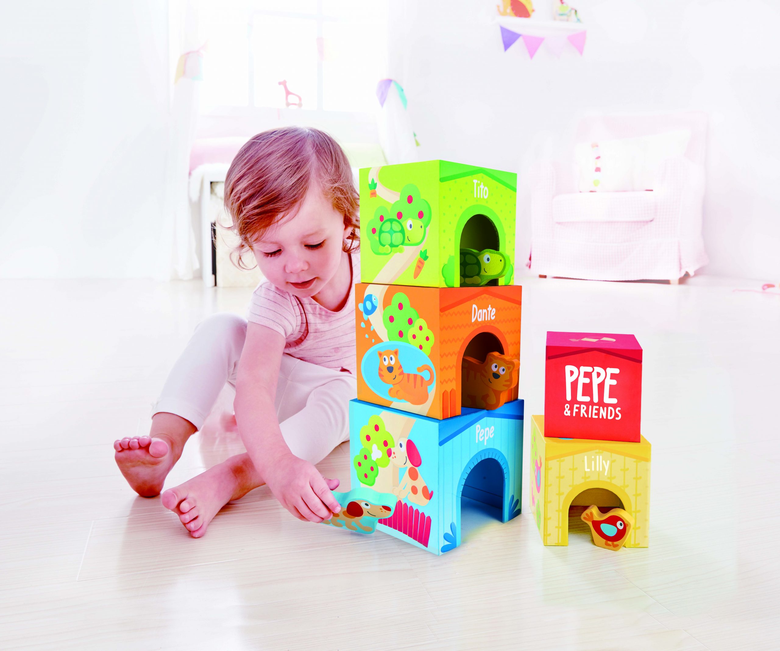 Verschillende blokken en figuren voor fantasiespel. Gemaakt van stevig karton dus licht van gewicht. Bestaat in totaal uit 9 delen. Stimuleert kinderen om te stapelen en te oefenen met bouwen. Aanbevolen voor kinderen van 18 maanden en ouder.