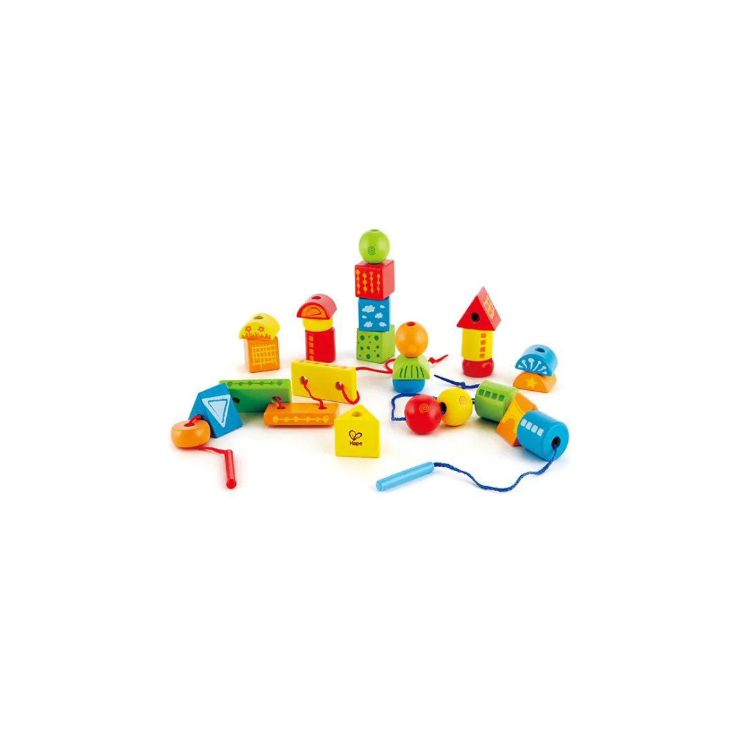 Met een eenvoudig koord maak je van blokken een trein, een rups, een toren en nog veel meer.