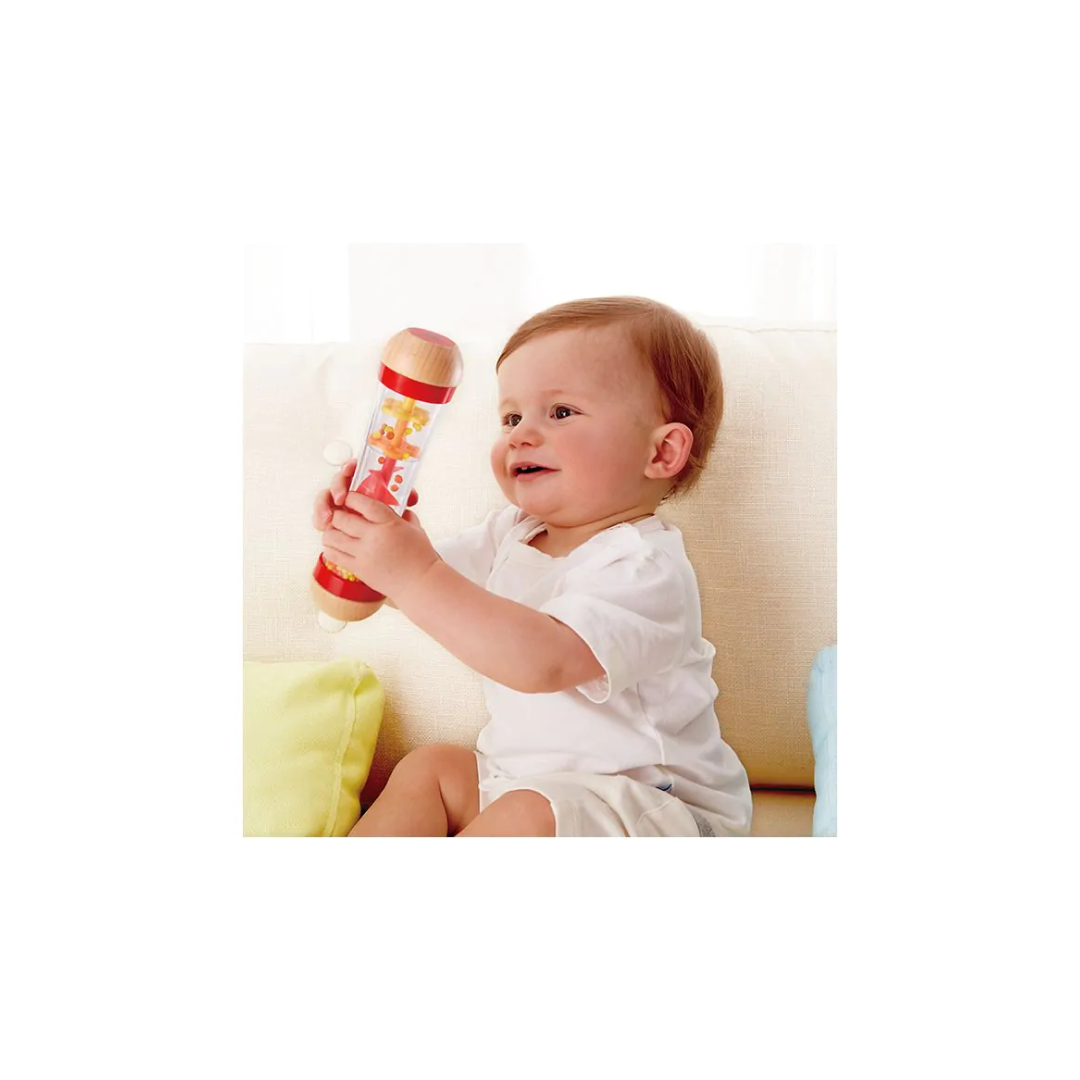 Draai deze regenmaker om en stimuleer de zintuigen met de langzaam rollende kralen en de zachte regendruppelgeluiden. Perfect ontworpen vorm voor een eenvoudige hantering door de peuter.