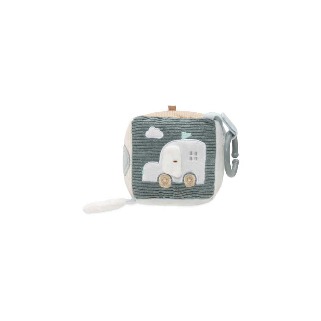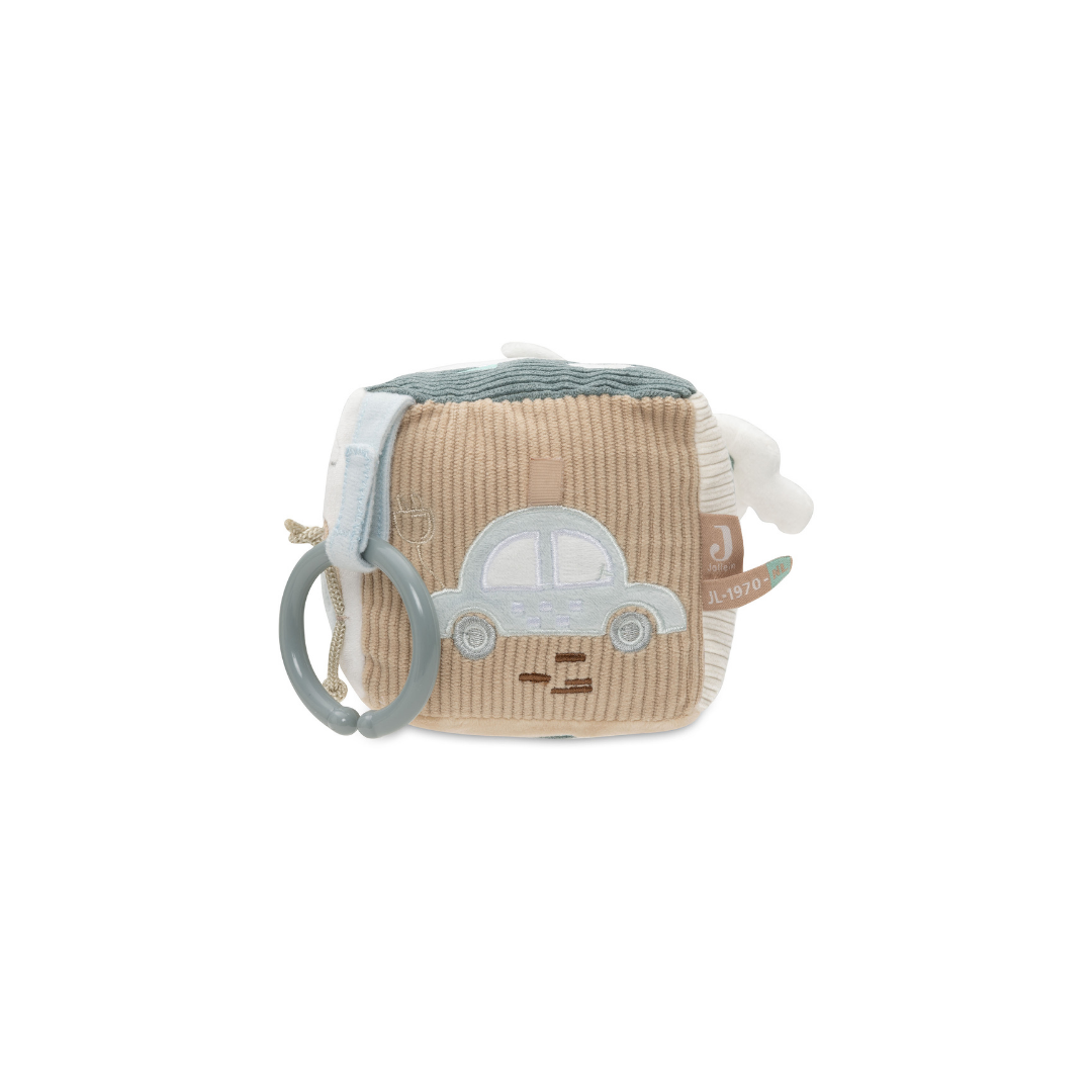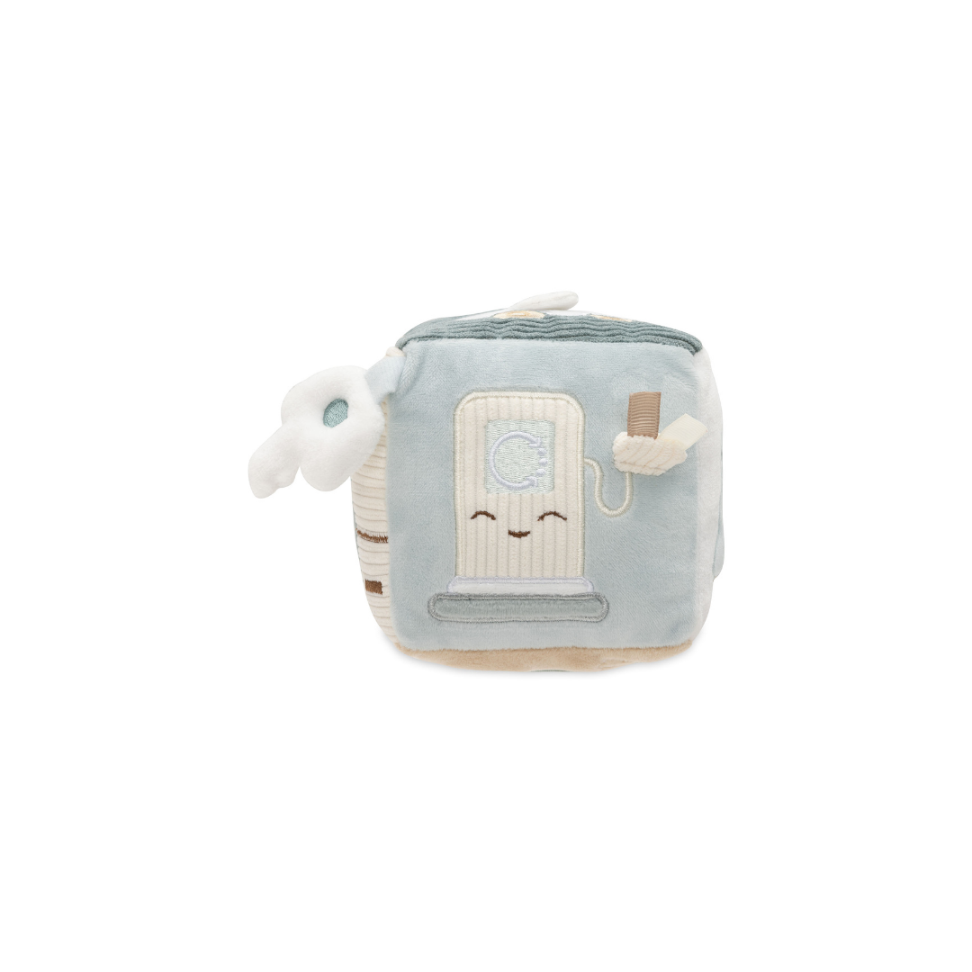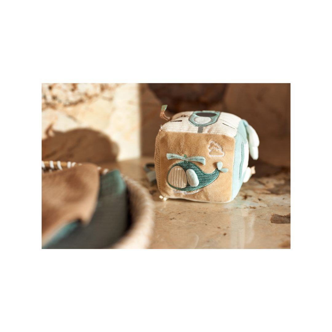 Deze avontuurlijke activiteitenkubus in het “On The Go”-thema is perfect voor nieuwsgierige kleintjes! In de frisse kleuren Sea Green en Biscuit biedt deze kubus een wereld vol ontdekkingen. Je vindt er een schattige sleutel met een knispergeluid, een tankpaal opdruk en een verkeerslicht met een spiegeltje, zodat je kleintje zich kan verwonderen. Daarnaast zijn er nog veel meer leuke elementen om mee te spelen! Deze activiteitenkubus stimuleert de zintuigen en zorgt voor eindeloos speelplezier!
