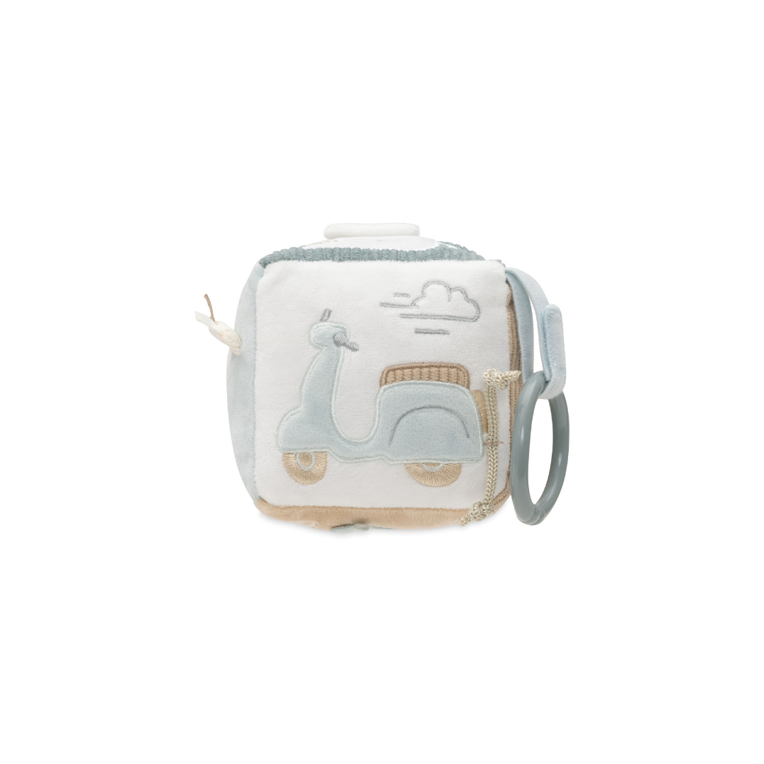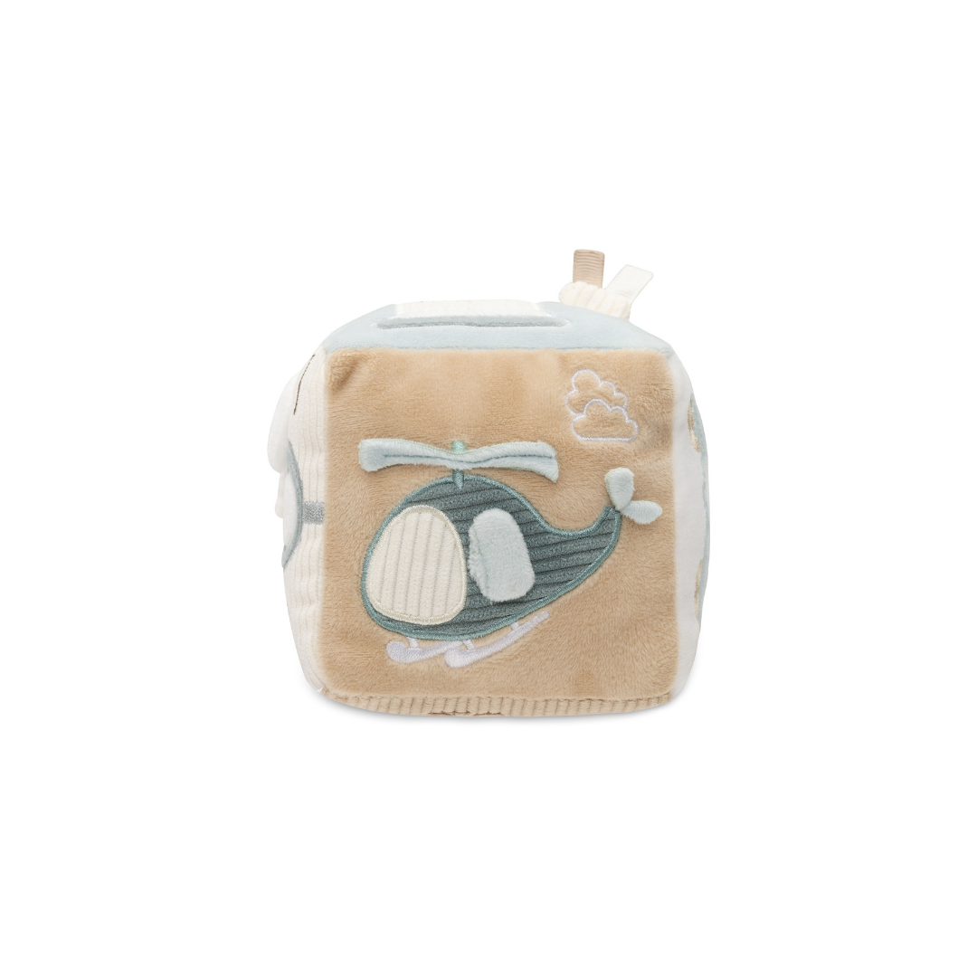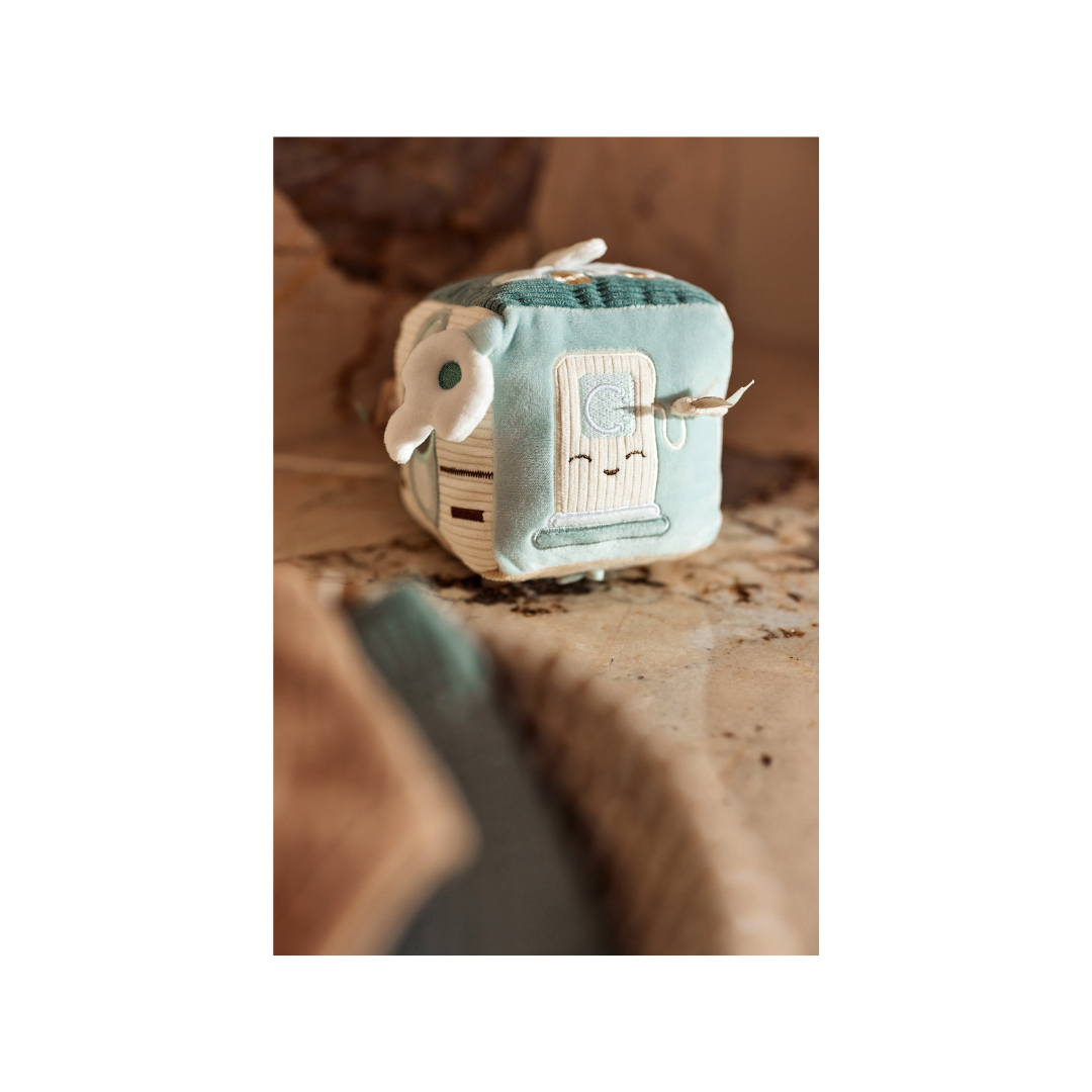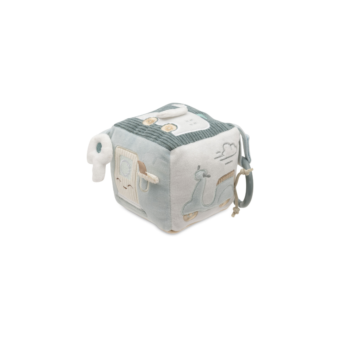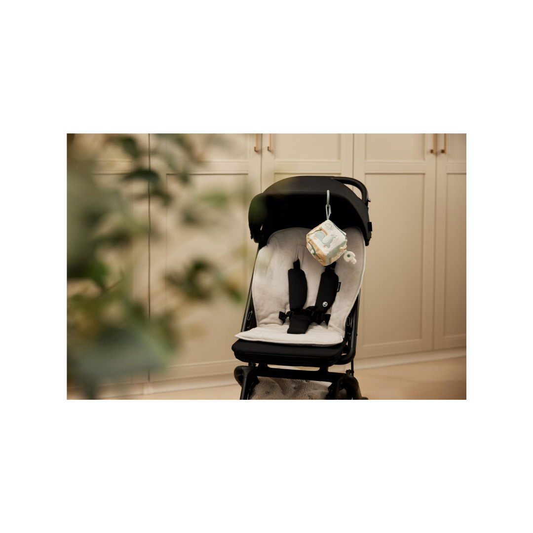 Deze avontuurlijke activiteitenkubus in het “On The Go”-thema is perfect voor nieuwsgierige kleintjes! In de frisse kleuren Sea Green en Biscuit biedt deze kubus een wereld vol ontdekkingen. Je vindt er een schattige sleutel met een knispergeluid, een tankpaal opdruk en een verkeerslicht met een spiegeltje, zodat je kleintje zich kan verwonderen. Daarnaast zijn er nog veel meer leuke elementen om mee te spelen! Deze activiteitenkubus stimuleert de zintuigen en zorgt voor eindeloos speelplezier!