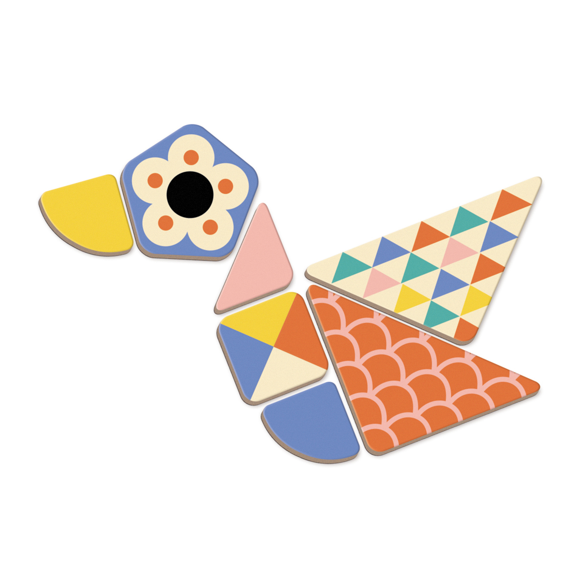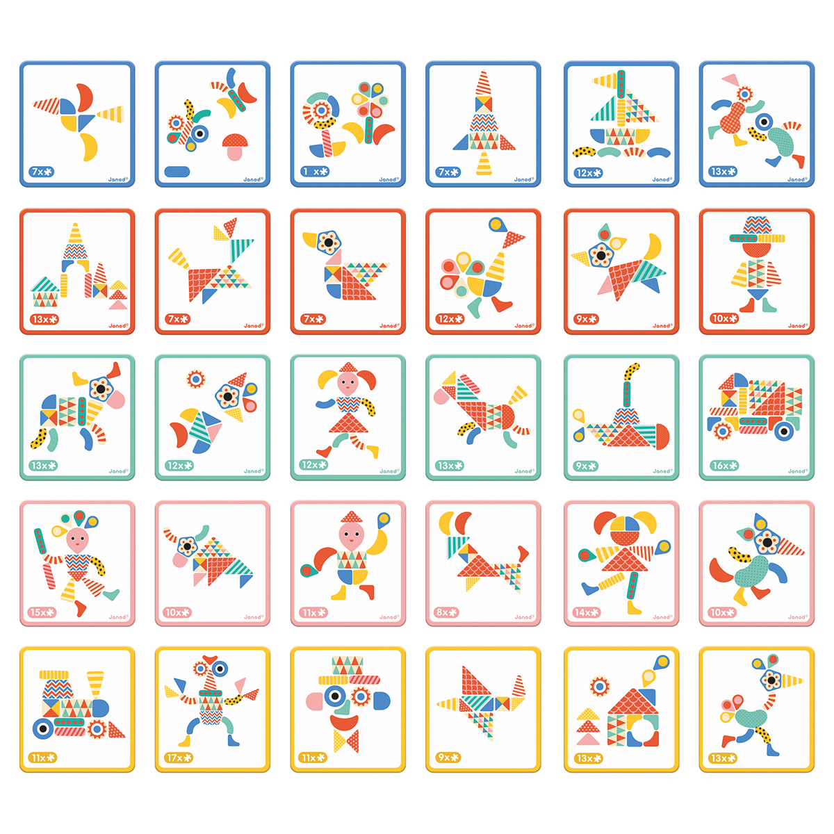 Educatief magneetspel van karton met tangram als thema. Bevat 43 magneten en 30 kaarten. Open het boek en maak dezelfde tangram als deze die op de kaart is aangegeven met behulp van de magneten. Geschikt voor kinderen van 3-8 jaar.