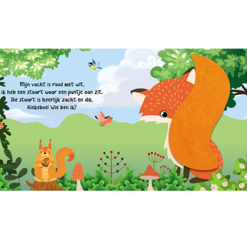 Zoek samen naar de verstopte bosdieren achter de vrolijke vilten flapjes. Leer spelenderwijs de bosdieren kennen door een verhaaltje. Wie zit er verstopt achter die grote staart? Het is de eekhoorn! Het stevige karton maakt dat het boek tegen een stootje kan. Ontdek ook de andere thema’s!