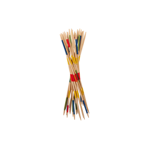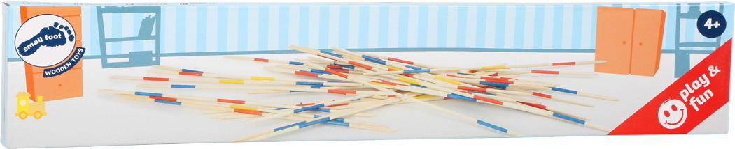 41 houten stokken trainen de behendigheid van elke speler voor binnen en buiten. Maar het is niet gemakkelijker om met de grote houten stokken te spelen dan met de kleintjes – alleen behendige en geduldige handen zullen slagen!