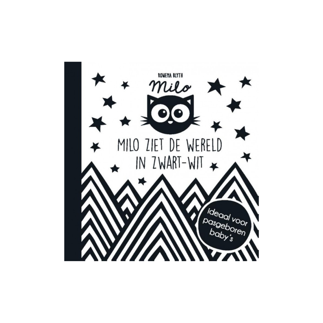 Milo de kat ziet de wereld in zwart-wit. Ook een pasgeboren baby ziet de wereld in zwart-wit. Daarom houden baby’s van contrasterende zwart-witpatronen. Hoe sterker het contrast, hoe beter ze het zien. De zwart-witte illustraties in dit boekje zijn ideaal voor pasgeboren baby’s. Door naar de beelden te kijken, worden de hersenen en de visuele ontwikkeling gestimuleerd. Ga mee op stap in de zwart-witte wereld van Milo en geef je baby de beste start. Want lezen begint op schoot, niet op school.