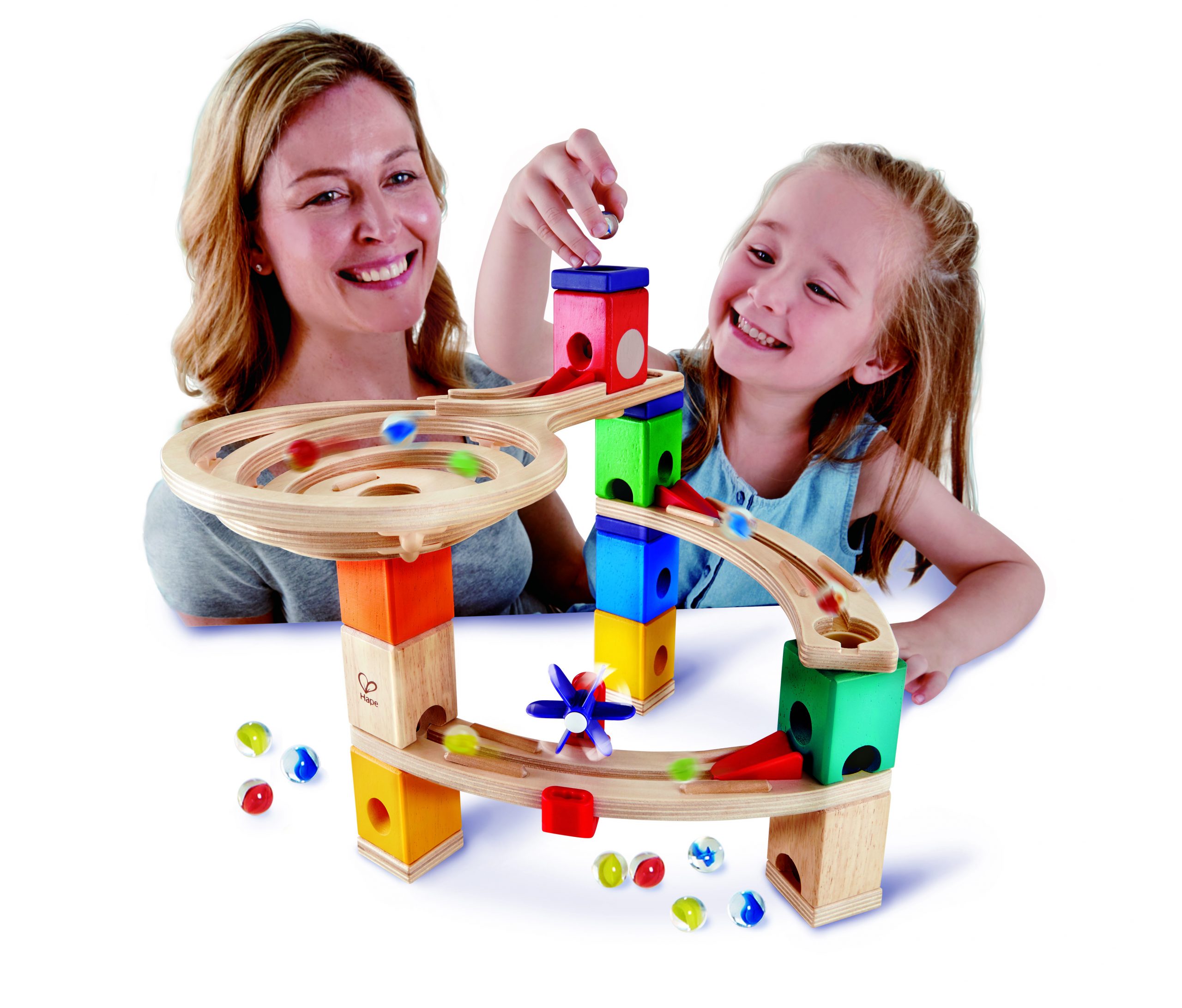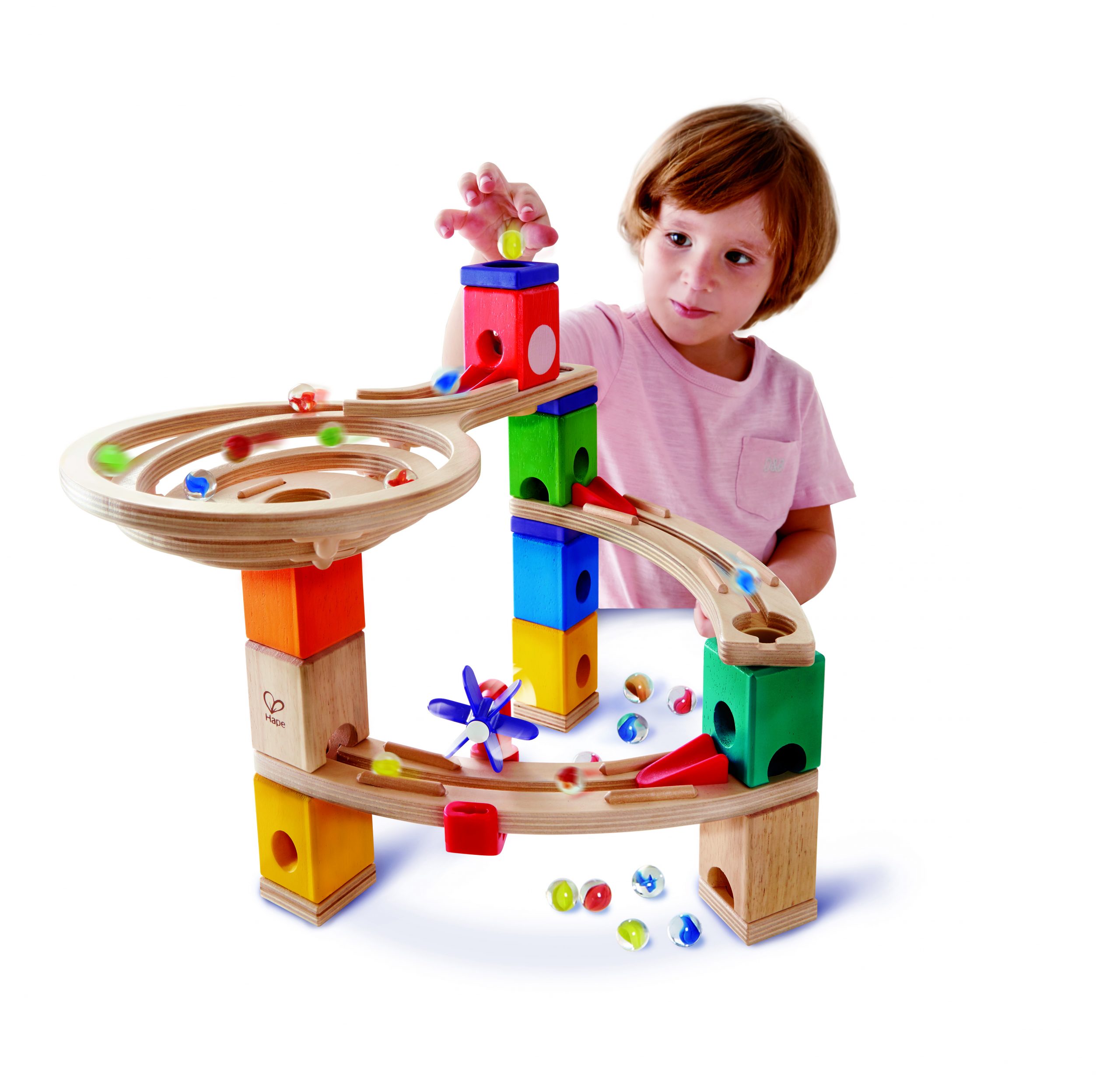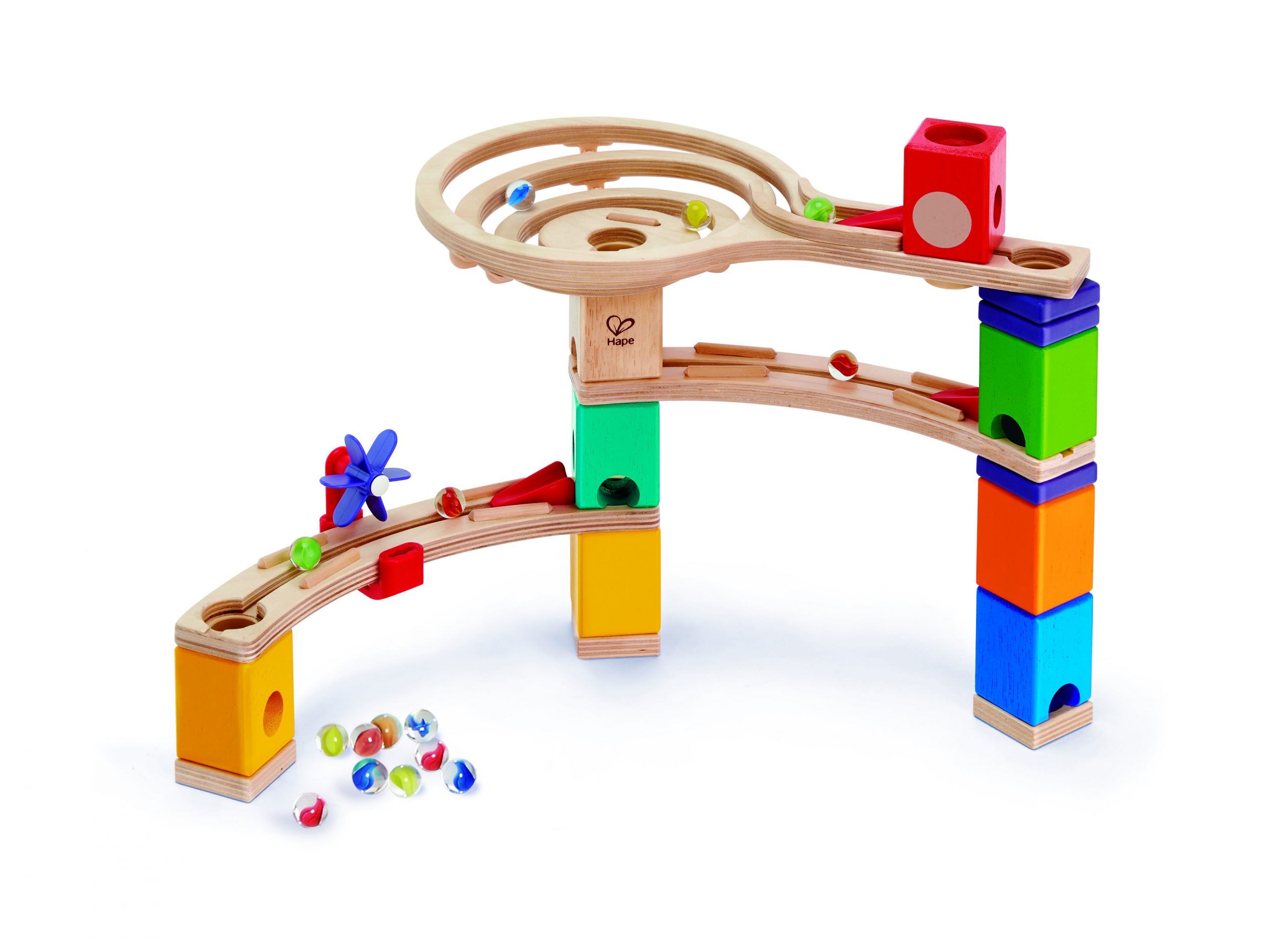 • Knikkerbaan bouwspeelgoed gemaakt van duurzaam hout en niet giftige verf op water basis