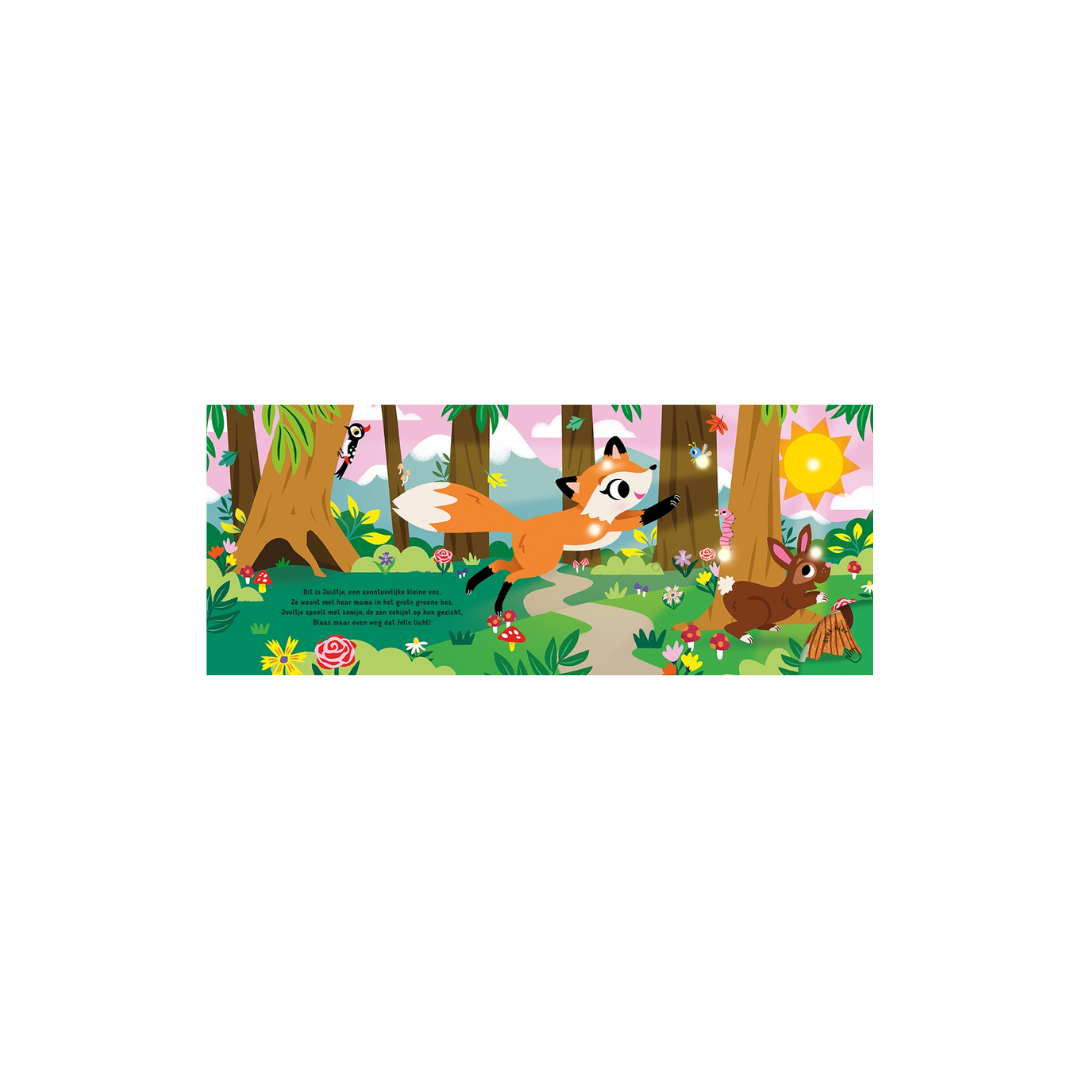 Ga je mee op pad met het vrolijke vosje Juultje? Na een lange dag vol avonturen is Juultje erg moe. Blaas jij de lampjes uit, zodat jullie lekker kunnen gaan slapen? Dit betoverende boekje bevat lampjes die je met een druk op de knop laat twinkelen en uit kunt blazen als het bedtijd is. Slaap lekker!