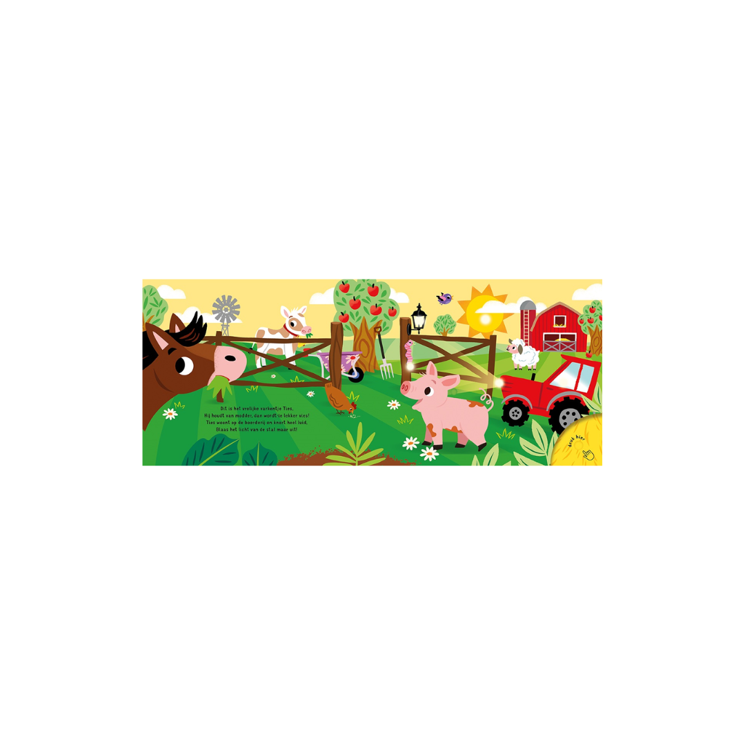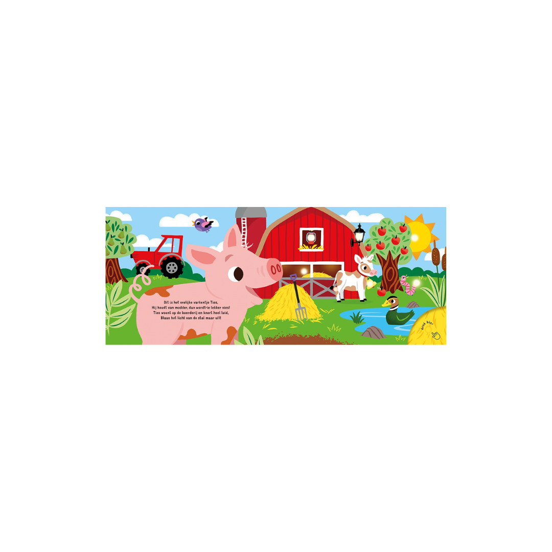 Ga je mee op pad met het vrolijke varkentje Ties? Na een lange dag vol avonturen is Ties erg moe. Blaas jij de lampjes uit, zodat jullie lekker kunnen gaan slapen? Dit betoverende boekje bevat lampjes die je met een druk op de knop laat twinkelen en uit kunt blazen als het bedtijd is. Slaap lekker!
