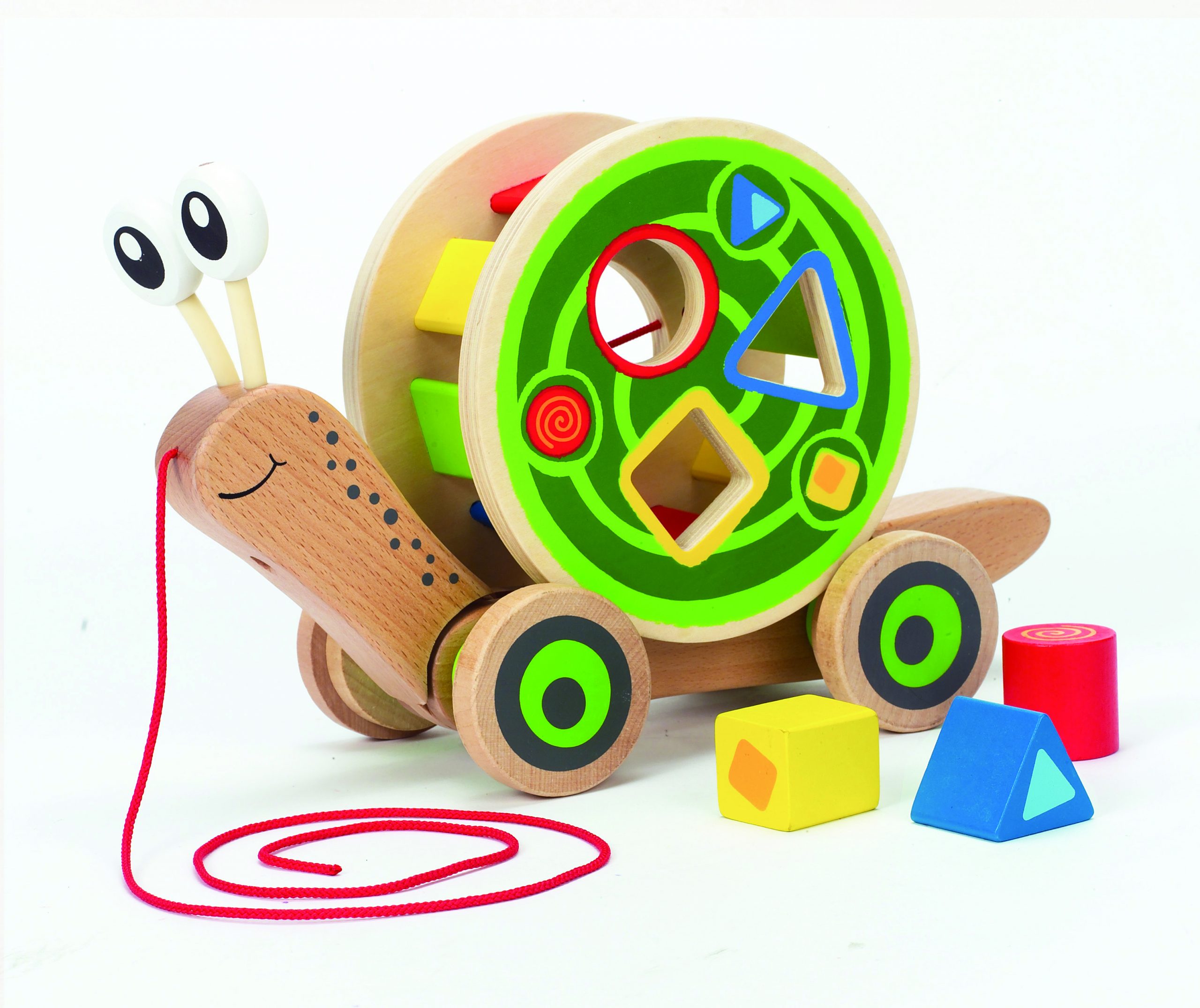 Deze veelzijdige slak draagt in zijn slakkenhuis houten blokken terwijl hij je volgt. Verlicht de lading door de kleurrijke vormensorteerder af te halen en hij kan op eigen kracht rijden.